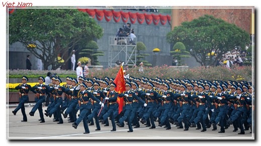 Đại bác, máy bay trực thăng và những hàng quân diễu binh thẳng tắp đã tạo nên không khí hào hùng tại quảng trường Ba Đình sáng 10/10.